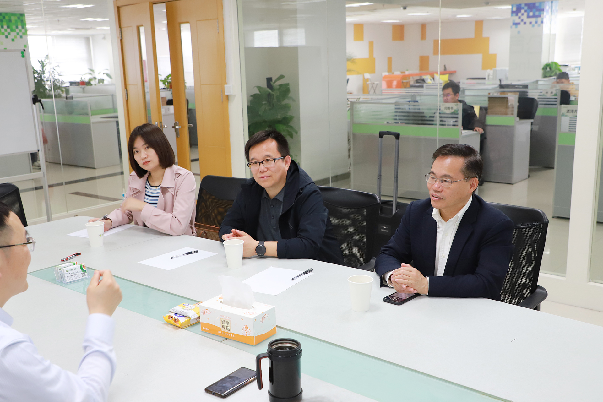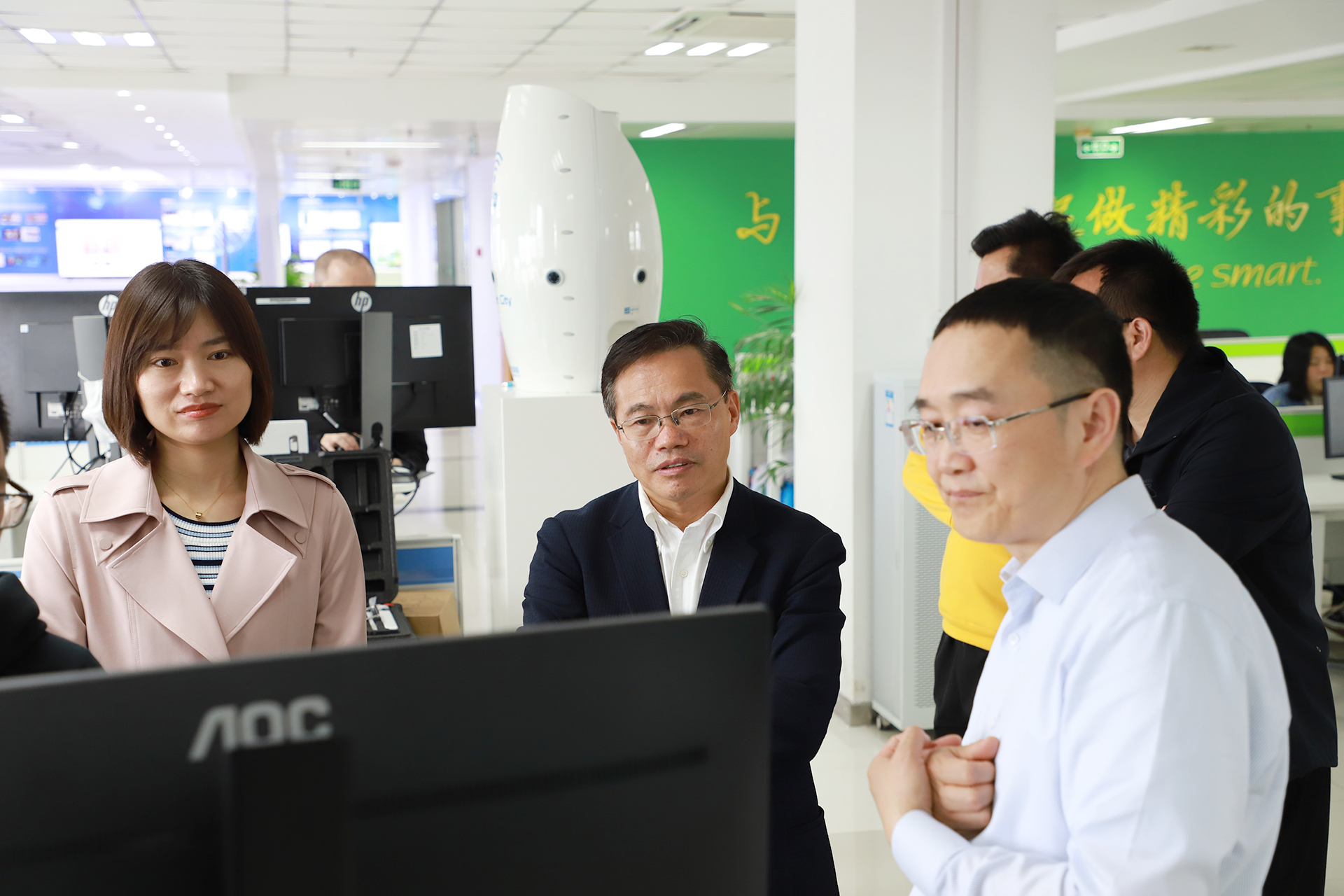 在座談過程中,雙方圍繞出版書籍的內容調整與再版事宜進行了細致探討,在緊跟行業發展充實與完善書籍內容上達成了一致。與此同時,來賓一行對云創大數據的新近產品與應用進行了進一步了解,參觀了榮譽墻、書籍展示區、大數據運營中心、人工智能研究院等,新奇前沿的多項云創應用獲得了來賓的充分肯定。