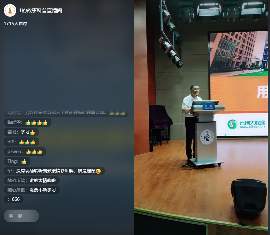 本次云課堂采用線上線下相結(jié)合的方式,來自南京金陵高等職業(yè)技術(shù)學(xué)院的部分同學(xué)們在現(xiàn)場與大批網(wǎng)友共計約5000人共同觀看了直播,還有的班級組織了全班觀看。劉鵬教授語言通俗易懂、幽默風(fēng)趣,在向大家介紹了相關(guān)技術(shù)概念之外,還詳盡地講解了大數(shù)據(jù)、人工智能等大量實例。劉鵬教授也介紹了云創(chuàng)大數(shù)據(jù)的企業(yè)概況,及其在大數(shù)據(jù)人工智能等方面的產(chǎn)品應(yīng)用和成功案例。大家對此表示收獲頗豐,紛紛與劉鵬教授進(jìn)行交流,并用熱烈的掌聲對劉鵬教授的分享表達(dá)了感謝。