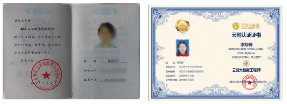 ●工信部教育與考試中心認證:工業和信息化人才培養工程人工智能數據處理證書、工業和信息化人才培養工程人工智能算法證書