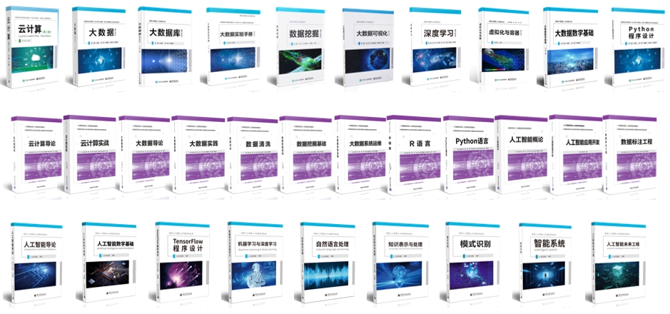 云創大數據已聯合多所院校教學師資,為不同年齡段讀者設計編寫了完整的教材體系,包括“高級大數據人才培養系列教材”、“大數據應用人才培養系列教材”、“高級人工智能人才培養系列教材”等在內的多個系列教材,幫助讀者輕松學習計算機和編程等課程。